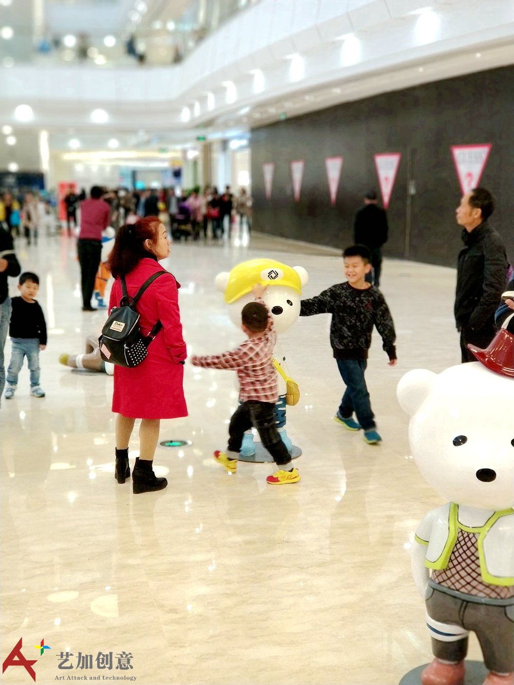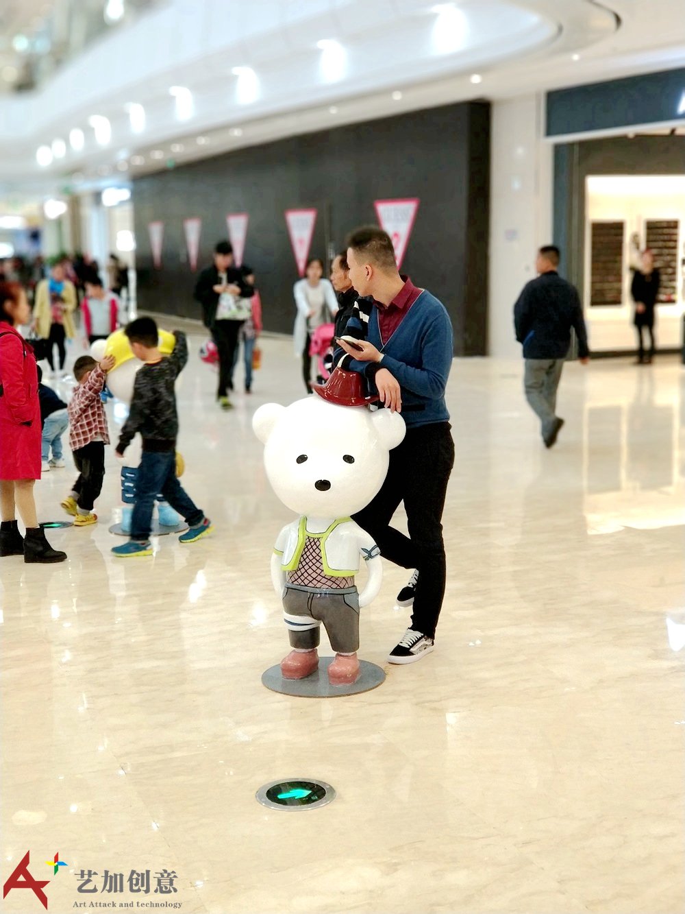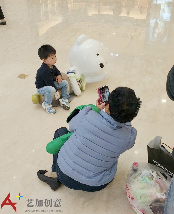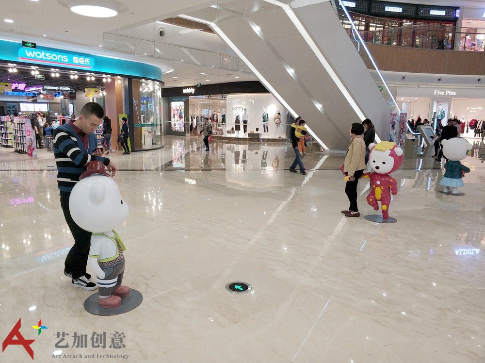 雕塑小品案例原创美陈ip:小熊天天 现场是艺加创意 0为 制作的。