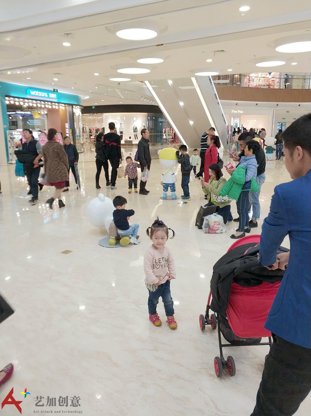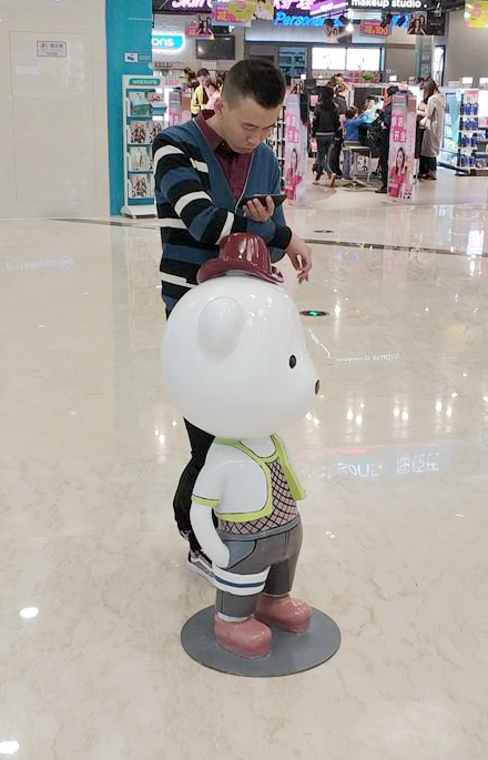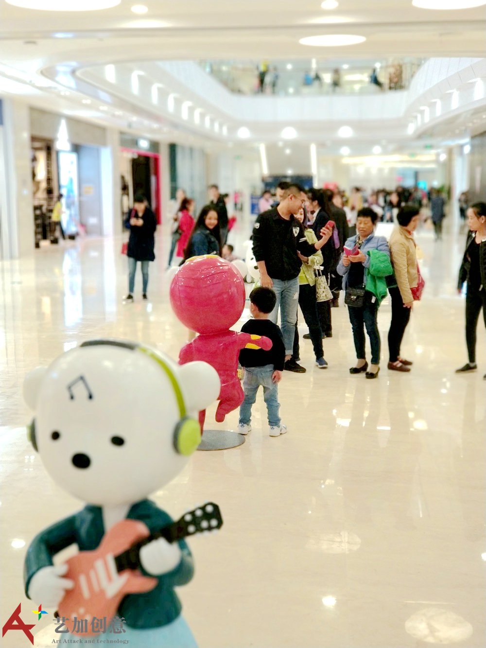 雕塑小品案例原创美陈ip:小熊天天 现场是艺加创意 0为 制作的。